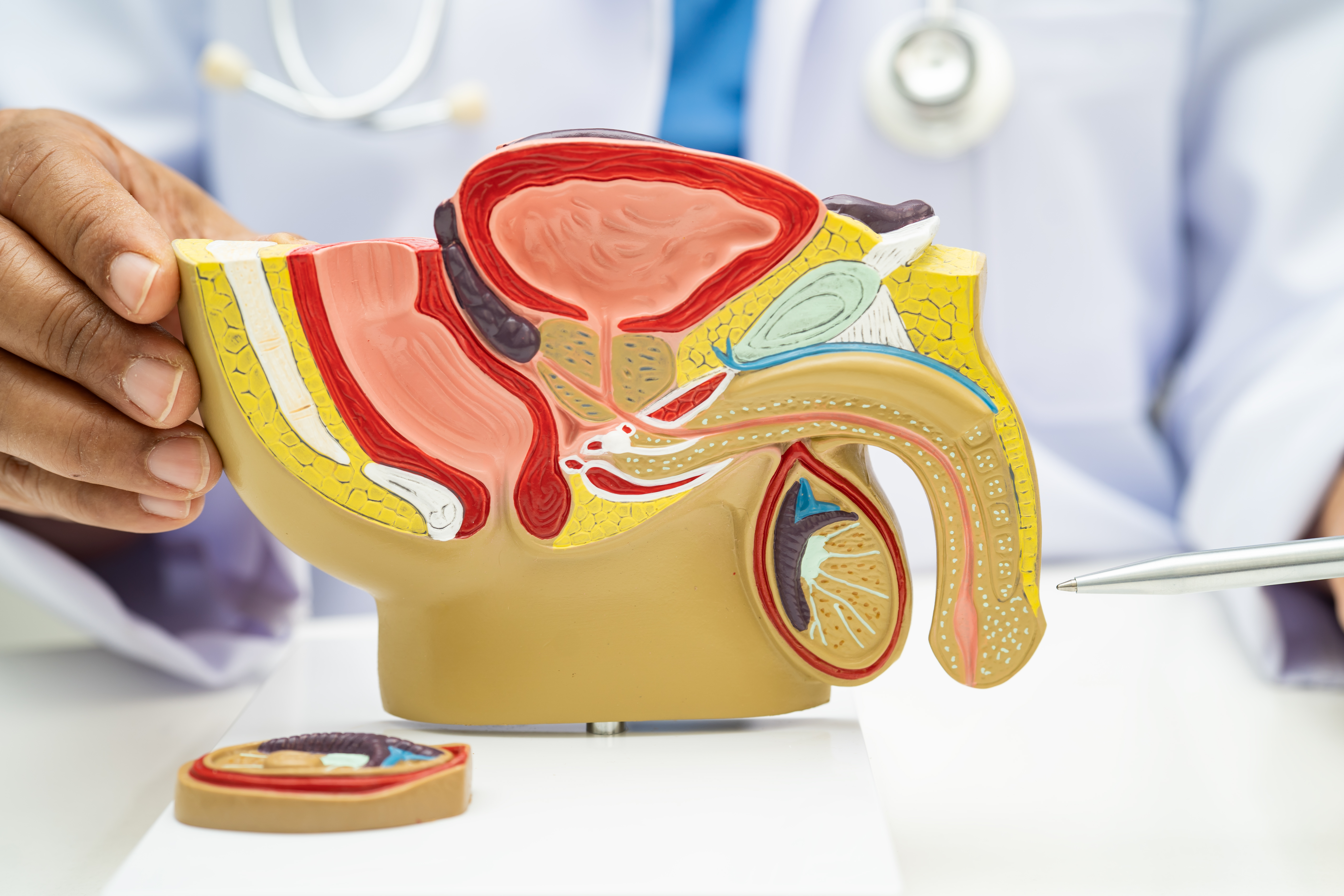 Para começar, vale saber o que é a próstata. Trata-se de uma glândula exclusivamente masculina, situada abaixo da bexiga e à frente do reto, com o tamanho aproximado de uma noz.
